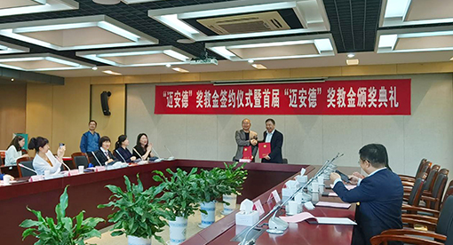 為了支持江南大學提高本科教學管理水平,支持江南大學教育事業的發展,加快江南大學推進“雙一流”院校的建設,2021年4月22日邁安德集團在江南大學設立“邁安德獎教金”,鼓勵本科教學管理人員精益求精、更好的架起學生與學科之間的橋梁,提高業務水平和效率、增強管理育人的服務意識,為企業與社會輸送更多優質的棟梁之材。