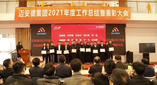 2022年2月8日,壬寅虎年正月初八下午,邁安德全體員工歡聚一堂,在集團活動中心隆重召開2021年度工作總結暨表彰大會。會議對2021年的工作進行總結,并就2022年集團戰略規劃和關鍵任務進行部署,同時對為公司發展做出突出貢獻的集體和員工進行表彰和獎勵。