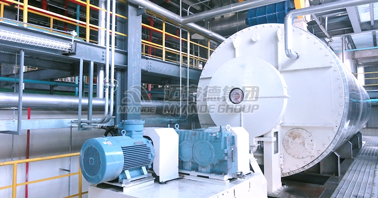 邁安德低溫脫溶機是一種大型連續(xù)低溫脫溶裝置,由低溫脫溶機A筒和B筒組成,輔以溶劑蒸汽過熱器、溶劑蒸汽循環(huán)風機、旋轉喂料器等裝置組套為成套設備,實現(xiàn)食用低溫脫溶大豆(或花生等)胚片的工業(yè)制取。