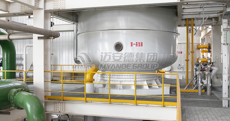 邁安德第一蒸發(fā)器是長管式升膜蒸發(fā)器,該設(shè)備利用來自DTDC的二次蒸汽,對混合油進行第一次蒸發(fā),提高混合油濃度。