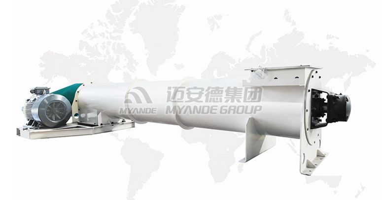 菌液或者水由泵通過(guò)霧化噴嘴噴吹進(jìn)混合機(jī)內(nèi),其轉(zhuǎn)子上的槳葉沿軸向和周向按一定的規(guī)律交錯(cuò)排列,且葉面與轉(zhuǎn)子軸線呈一定的角度,從而使葉面之間形成一個(gè)螺旋面。動(dòng)力通過(guò)鏈輪由電機(jī)傳給轉(zhuǎn)子,轉(zhuǎn)子工作時(shí)一邊帶動(dòng)物料不停地翻轉(zhuǎn),物料與液體混合,一邊將物料向出料口推進(jìn),最終達(dá)到接種均勻的目的。