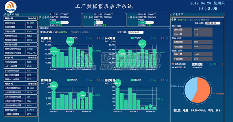 通過PLC采集生產中各種參數、指標等數據,進行展示、分析,提醒、預測。包含設備主動維護管理、生產數據管理、品控化驗管理、能源管理等。